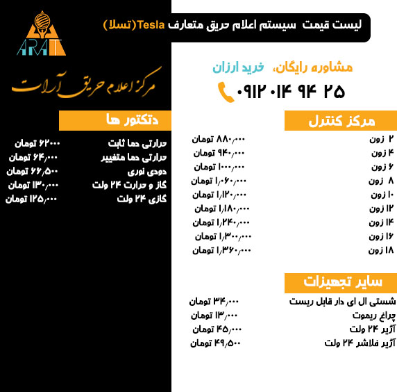 لیست قیمت اعلام حریق تسلا به عنوان یکی از سیستم های اعلام حریق مورد تایید آتش نشانی تهران مورد استفاده قرار می گیرد.